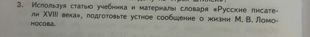 используя статью учебника и материалы словаря "Русские писатели 18 века" , подготовьте устное сообщение о жизни М.В.Ломоносова