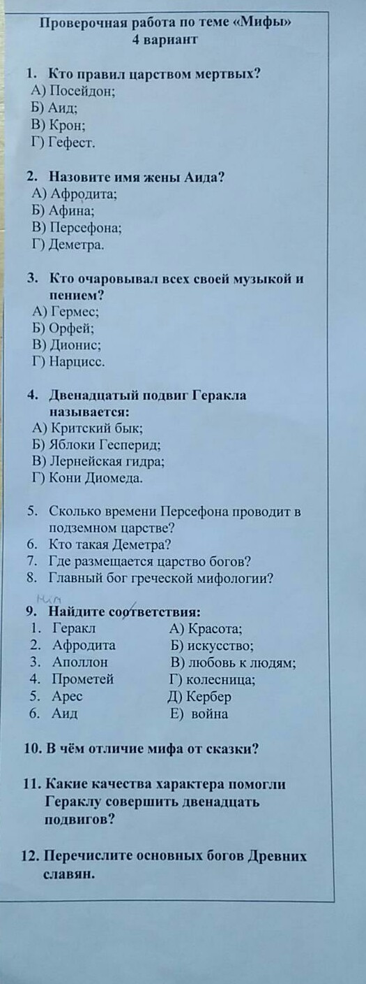10) В мифе рассказываются реальные истории древних времен. а сказку сочиняют писатели