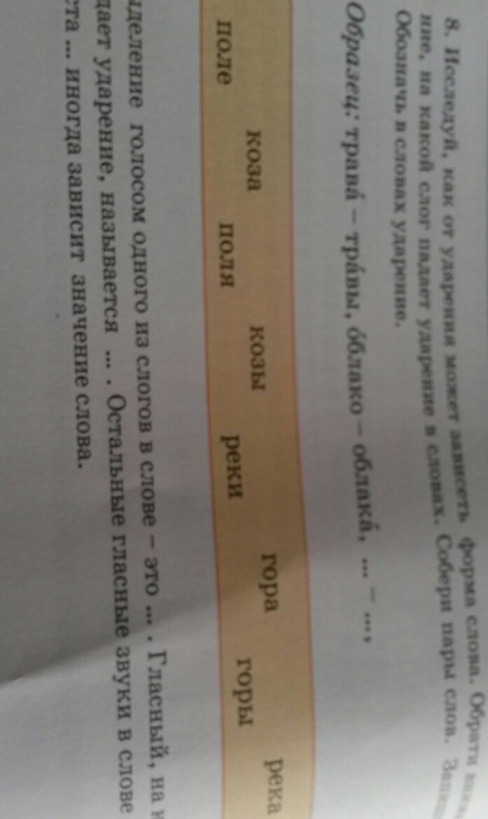 Козá-кóзы, пóле-поля(ударение на Я), рéки-рeкá, горá-гóры.