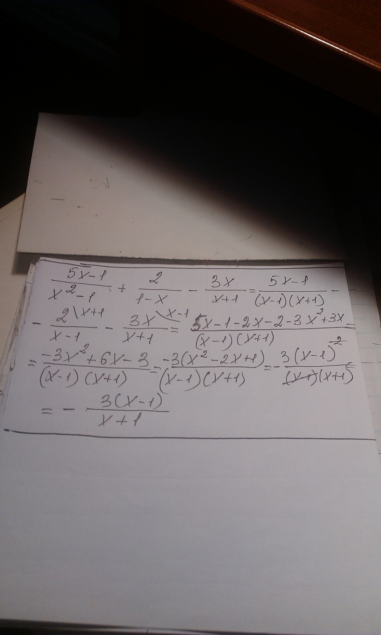 сложение и вычитание дробей с разными знаменателями: 5х-1/х2-1+2/1-х-3х/х+1