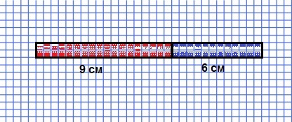 красная часть=3 см + синяя часть