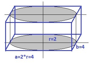 прямоугольный параллелепипед описан около цилиндра, радиус основания и высота которого равны 2. найдите объём параллелепипеда.