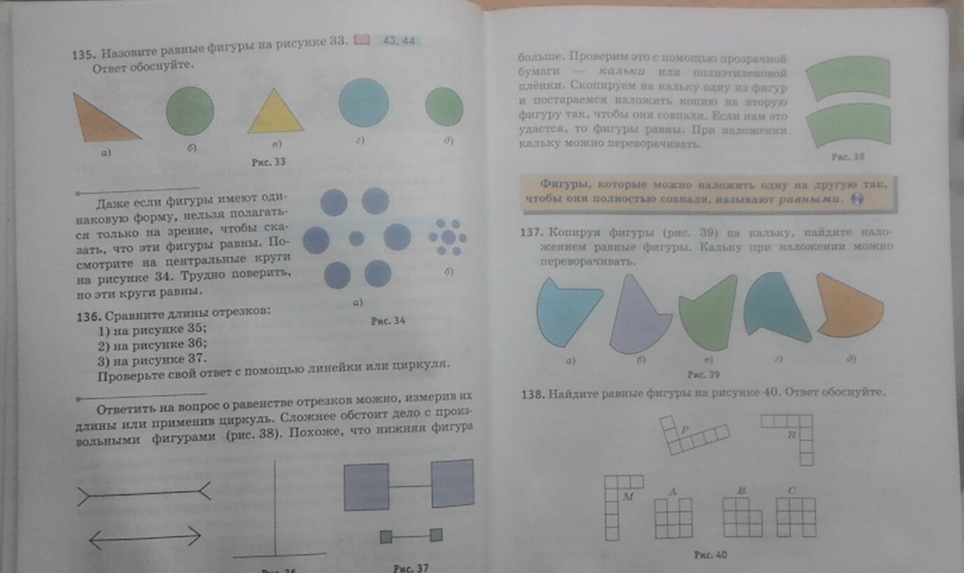 Нет, в номере №138 если фигуры повернуть и наложить,они будут совпадать.Это вы ошиблись.