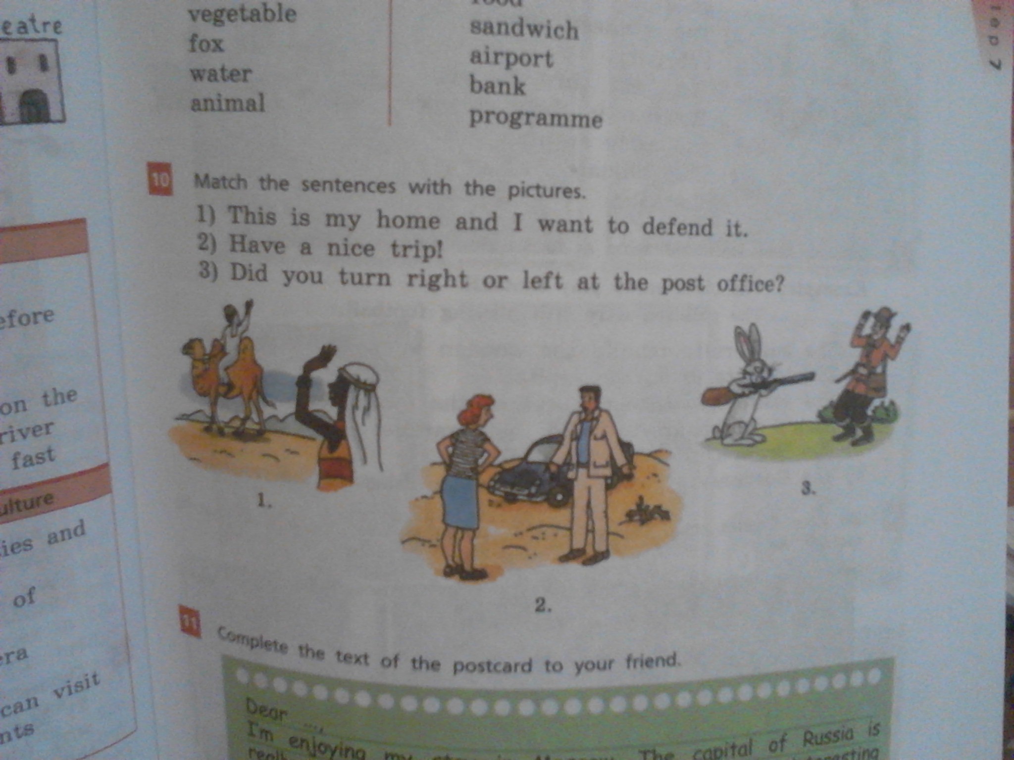 1 предложение к третьей картинке, 2 предложение к первой картинке, 3 предложение ко второй картинке.
