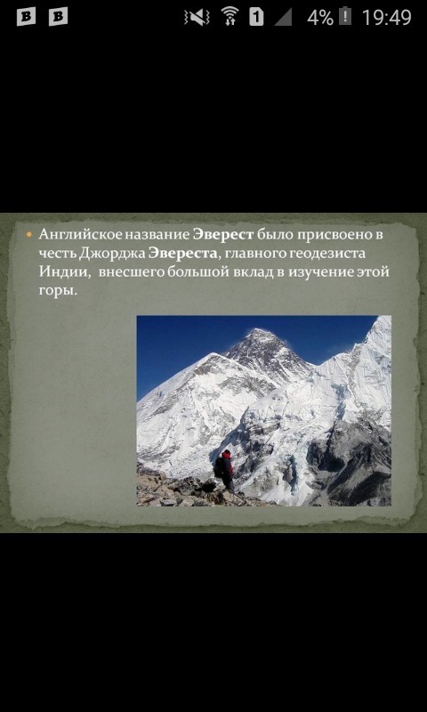 Английское название «Эверест» (англ. Mount Everest) присвоено в честь сэра Джорджа Эвереста(англ. George Everest, 1790—1866), руководителя геодезической службы Британской Индии в 1830—1843 годах.