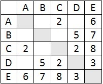 На рисунке приведена весовая матрица графа. Определите, сколько рёбер имеет такой граф.