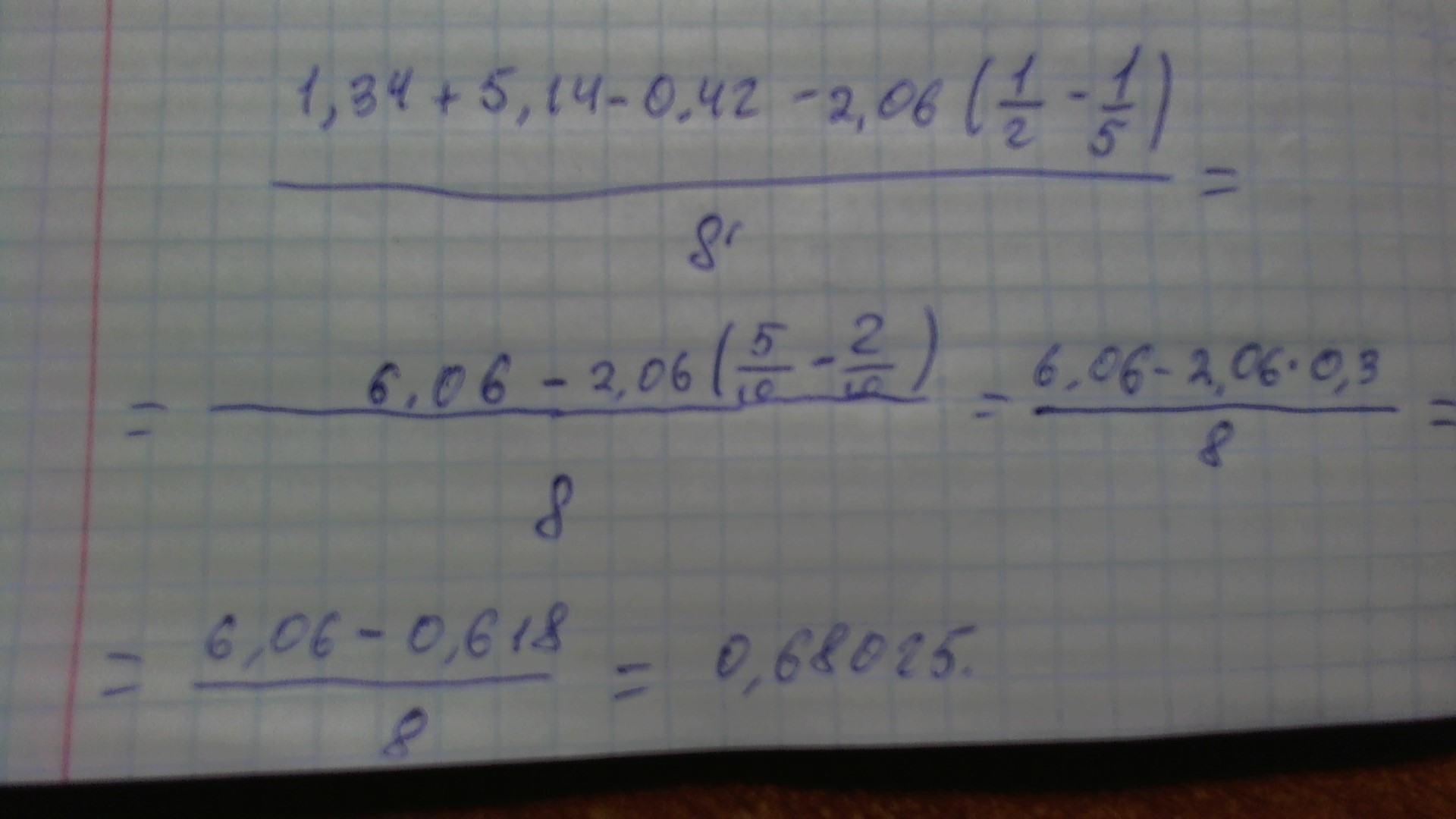 1.34 + 5.14 - 0.42 - 2.06 * (1/2 - 1/5) = 6.06 - 0.618 = 5.442