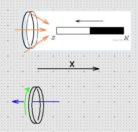 значит магнитное поля тока индукции направлено влево (синяя стрелка на рисунке внизу)