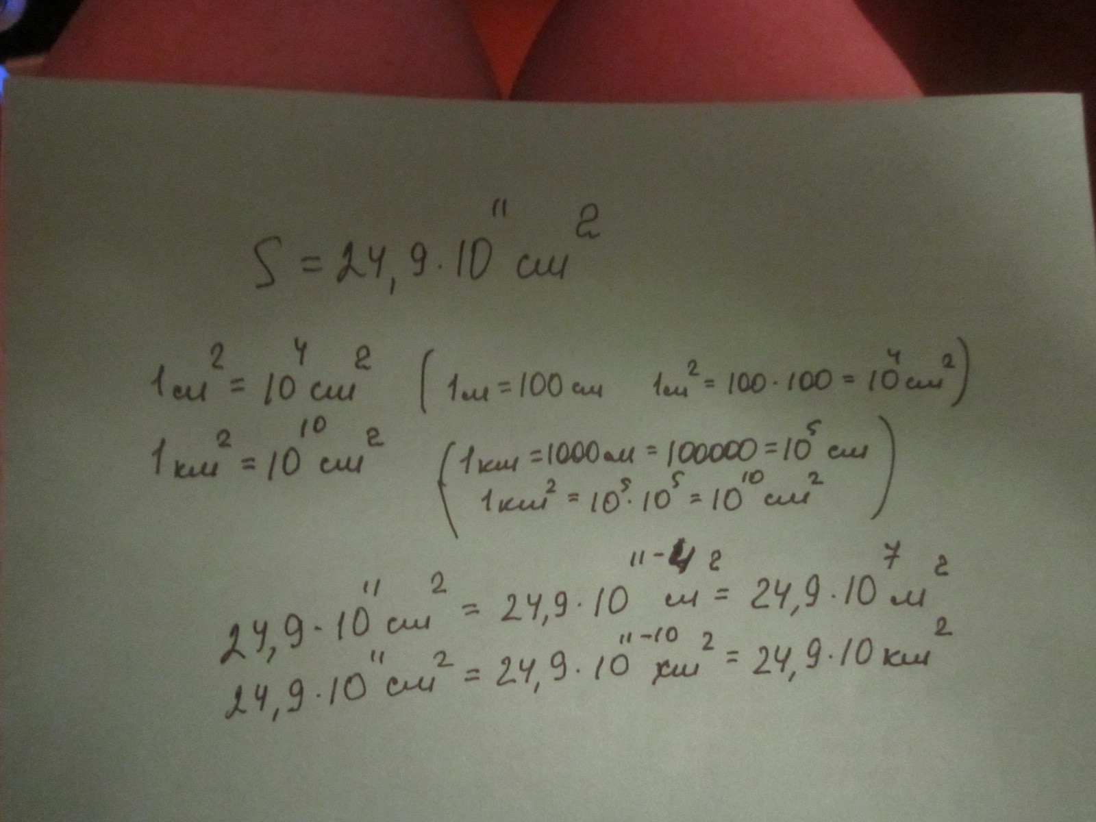 Дайте развернутый ответ:площадь сказочного города Чарльстон 24,9×10^11×см^2.Запишите чему равна площадь города в м^2,км^2.умоляю помогите
