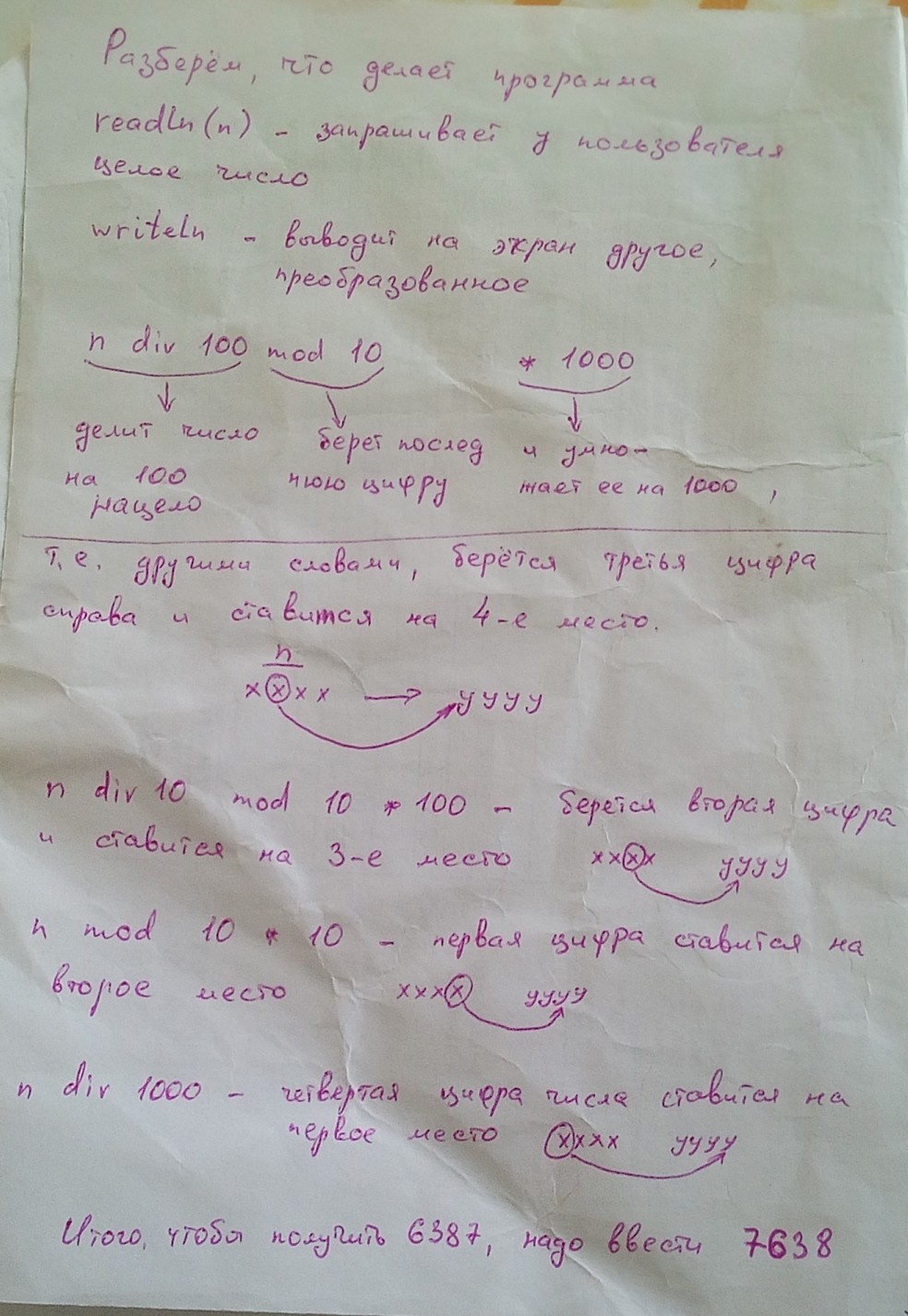 Какое число необходимо подать на вход программе, чтобы было выведено число 6387?