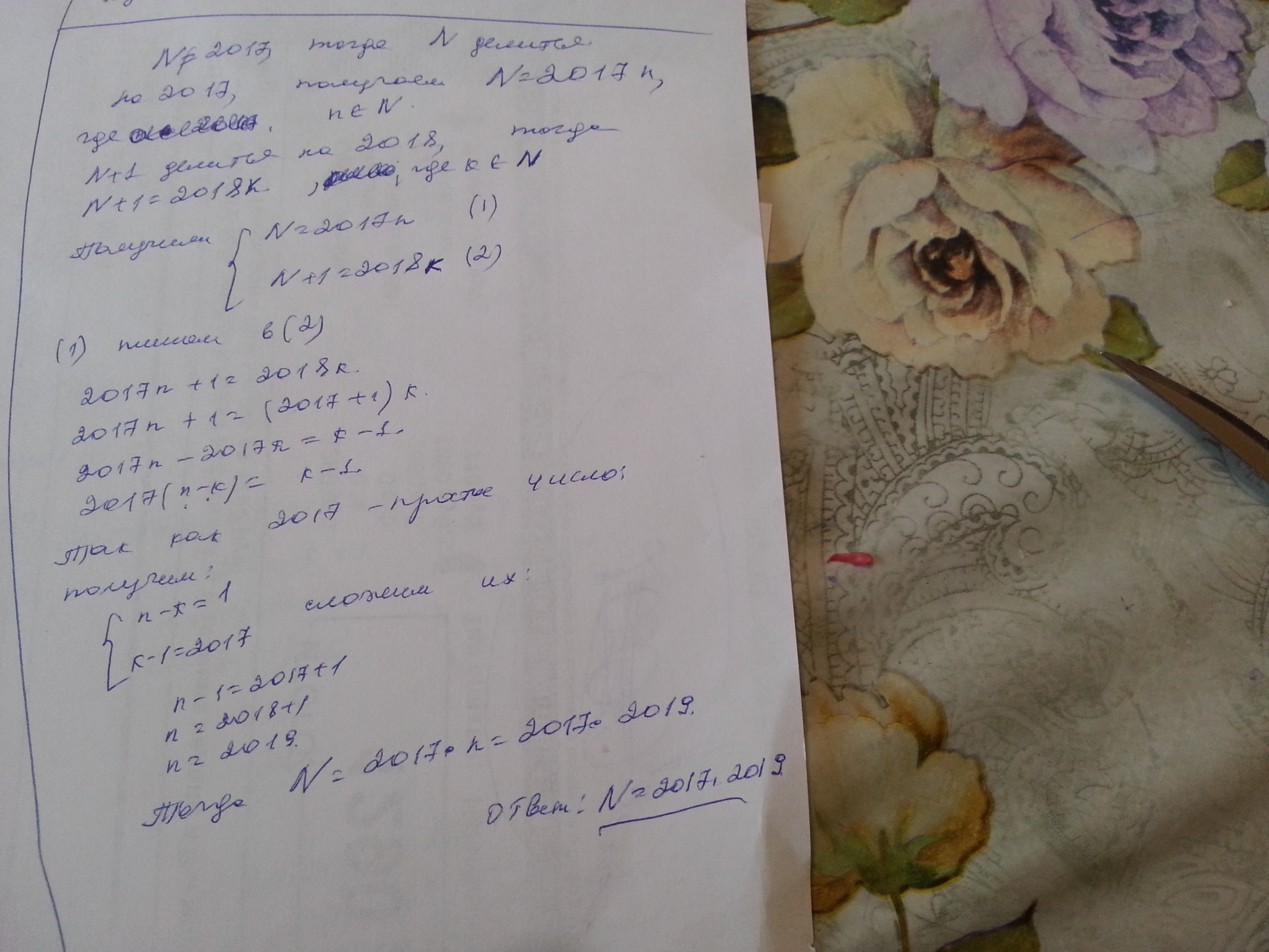 петька загадал наименьшее натуральное число N≠2017 такое, что нацело делится на 2017, а N+1 нацело делится на 2018. чему равно N