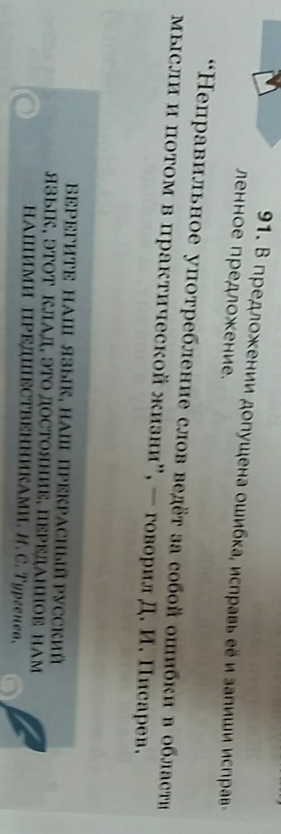 "Неправильное употребление слов влечёт за собой ошибки в области мысли и потом в практической жизни",-говорил Д.И.Писарев