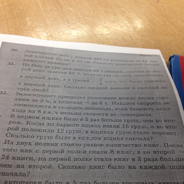 Общаться в чатеДобрый день)Решение: х — скорость велосипедиста. х-8 — скорость пешехода.(Х-8)*6=х*2