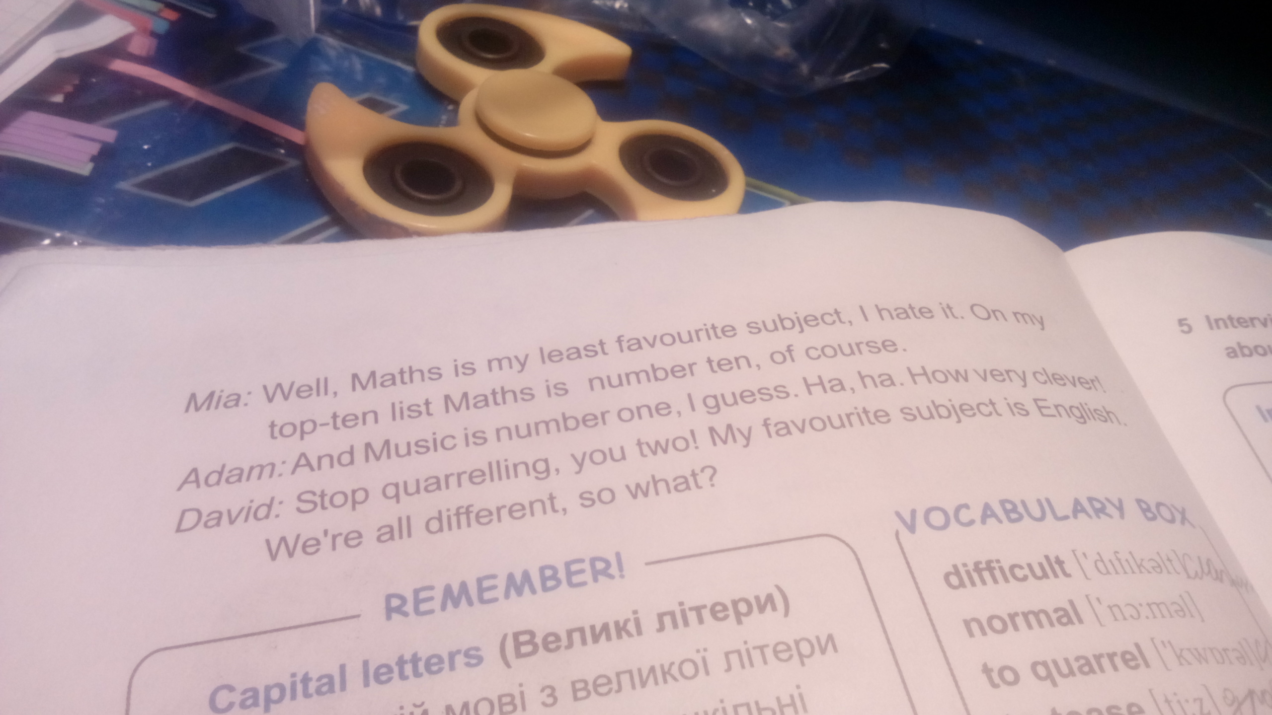 David : Хватить спорить, вы оба ! Мой любимый предмет английский. Мы все разные, так что из этого ?