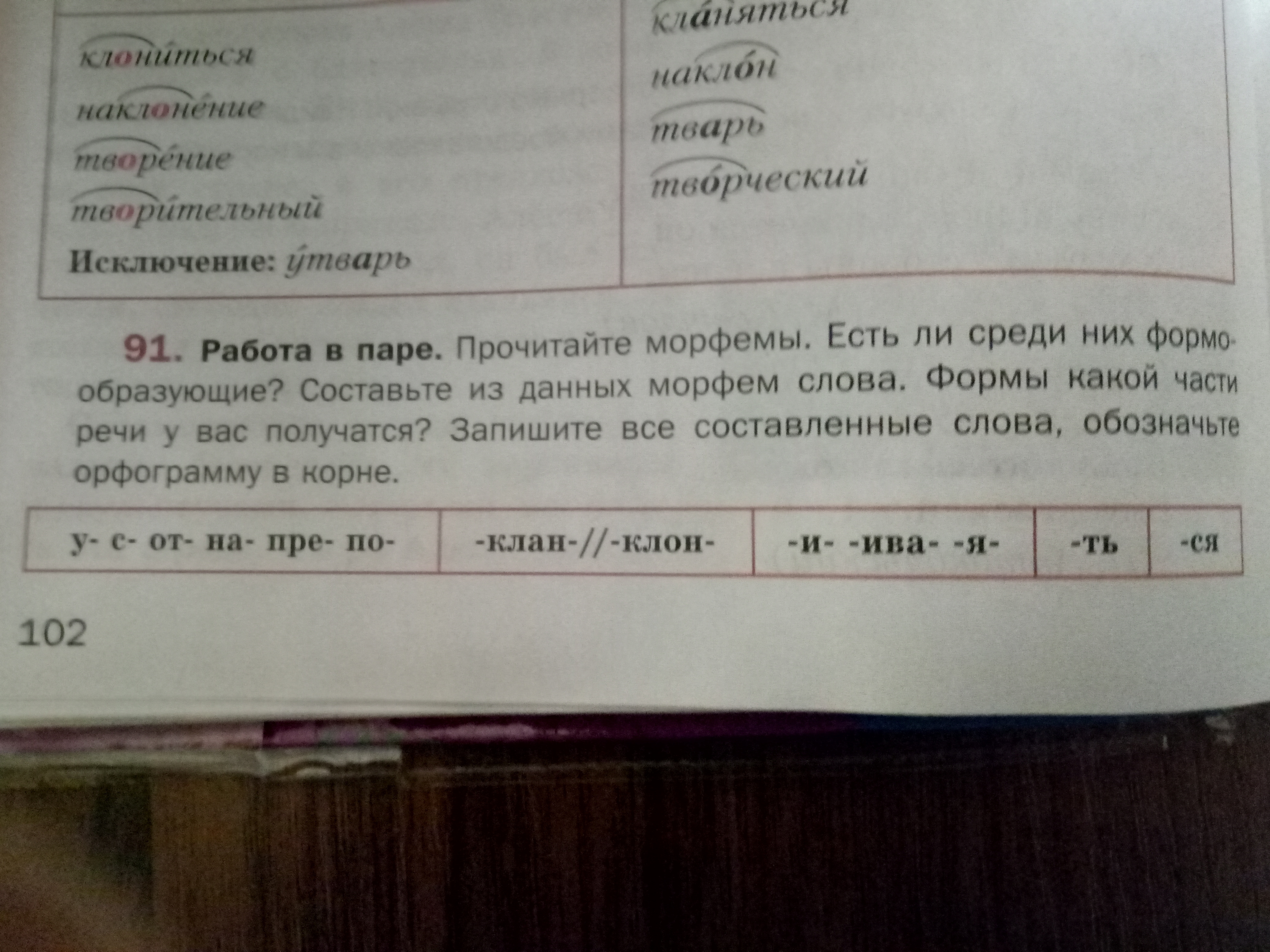обратите внимание на то, что не обязательно взять часть из каждого столбика например:пре-клон-и-ть-ся или с-клон