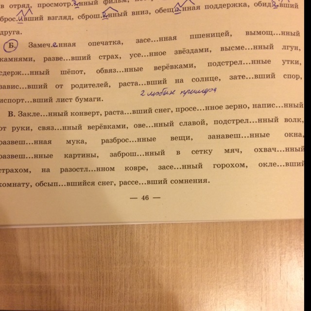 Б ) замеченная ,засееная ,вымощеный ,развеевщий ,усеенное, высмеянный ,здержанный,объвязанные,подстрелянные ,---,растаявший ,--,испортивший