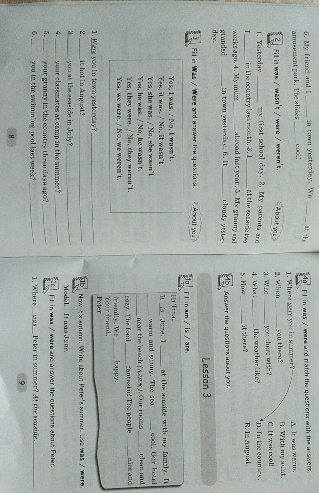1)Was2)Were 3)Was 4)Wasnt 5)Werent 6)Wasnt