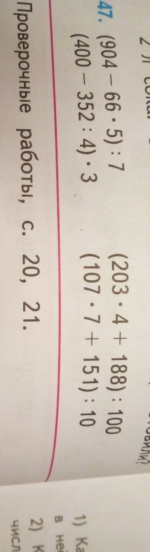 (107 * 7 + 151) : 10 = (749 + 151) : 10 = 900 : 10 = 90