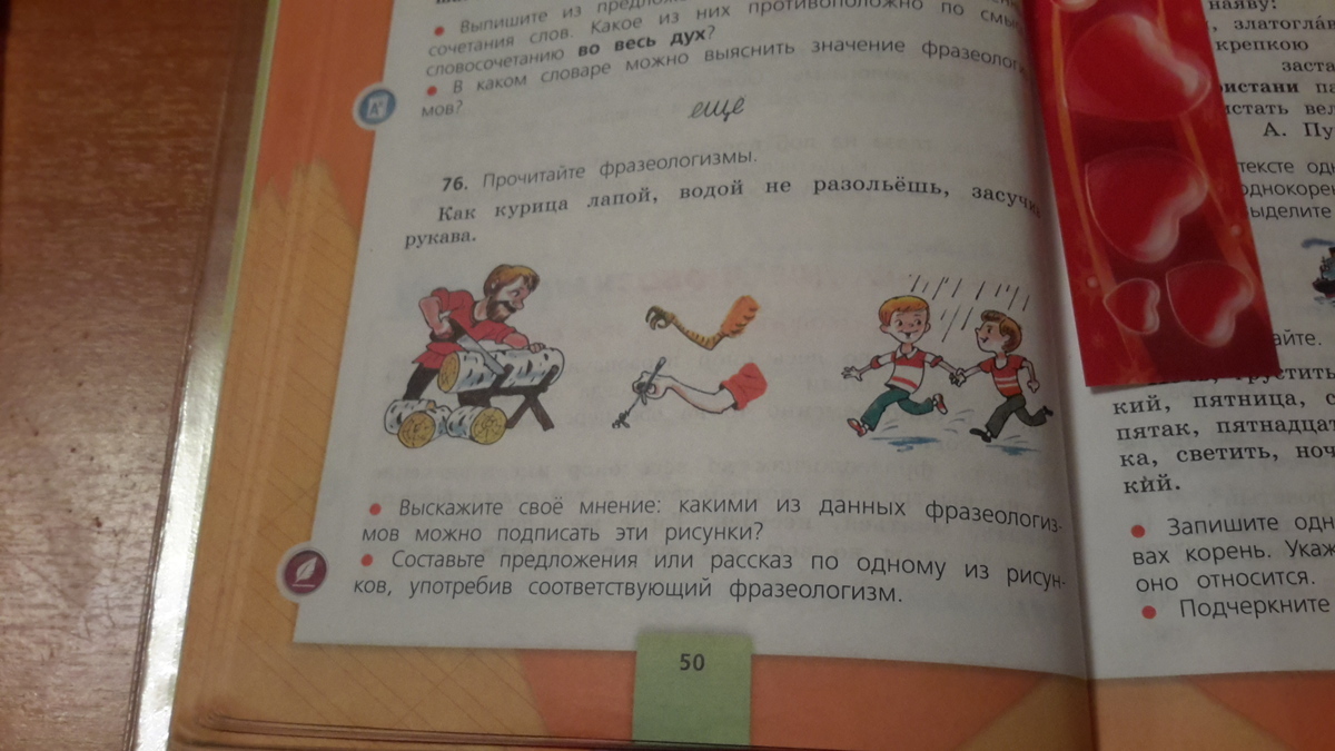 упражнение 76.....Составить предложение или рассказ по одному из рисунков , употребив соответствующий фразеологизм