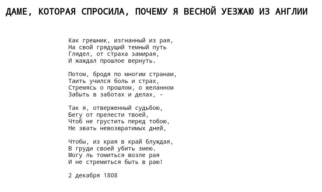 Отверженный судьбою;Бегу от прелести твоей; В груди своей убить змею; топить я возле рая- метафоры
