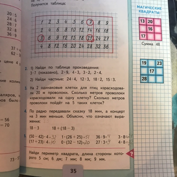 Найди периметр квадрата, длина стороны которого 5 см; 6 дм; 7 мм; 8 мм; 9мм.