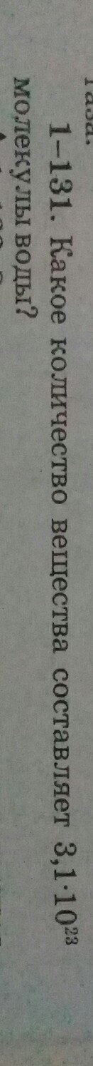 N (количество вещества) = n(кол-во молекул вещества)/Na(число Авогадро=6,02*10^23) N(Н2О)=3,1*10^23/6,02*10^23=0,5 моль