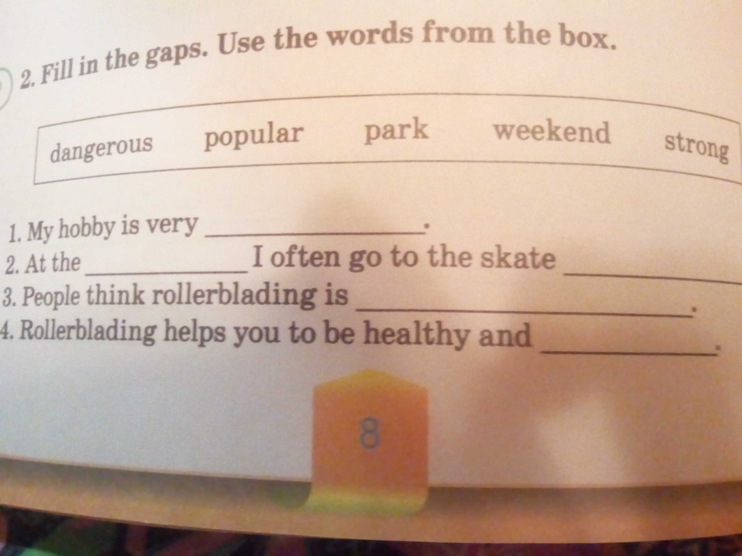 2 At the weekend I often go to the skate park.
