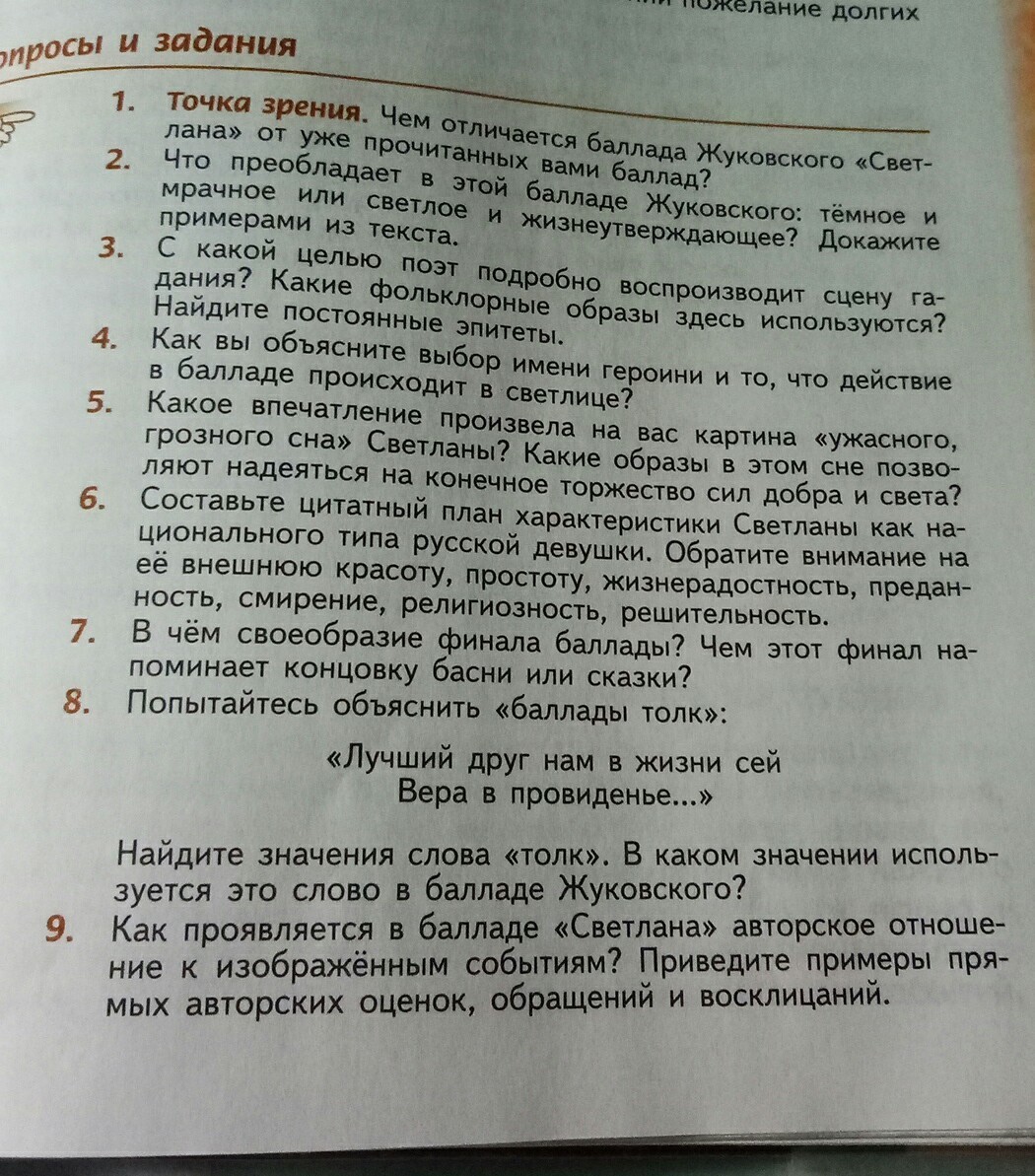 Но сон в балладе выступает не в роли предвестника несчастий, а просто отражает подсознательные страхи Светланы. Вместе с пробуждением девушки, тьма исчезает, а утром она встречает свою судьбу.