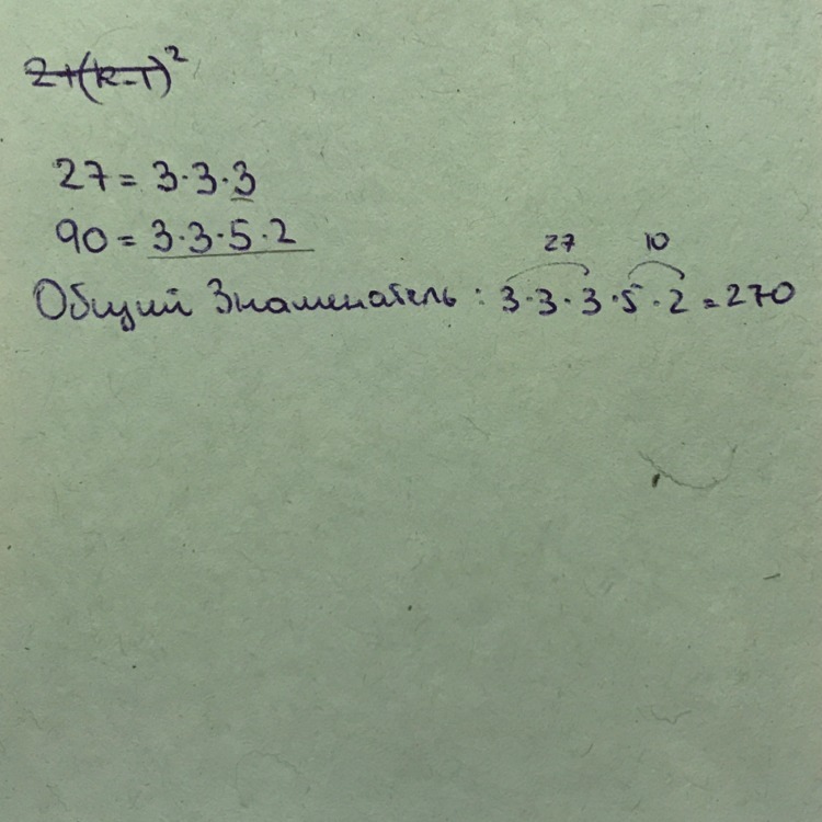 По сколько общий знаменатель должен делиться на все, то ты берёшь самое большое число и умножаешь на то, чего в нем нет, но есть в других числах ( в данном случае это третья тройка у двадцати семи)
