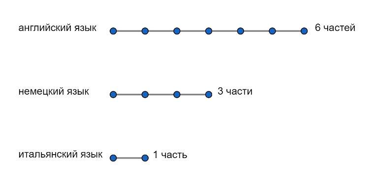 Представим количество людей, изучающих иностранные языки в виде частей.