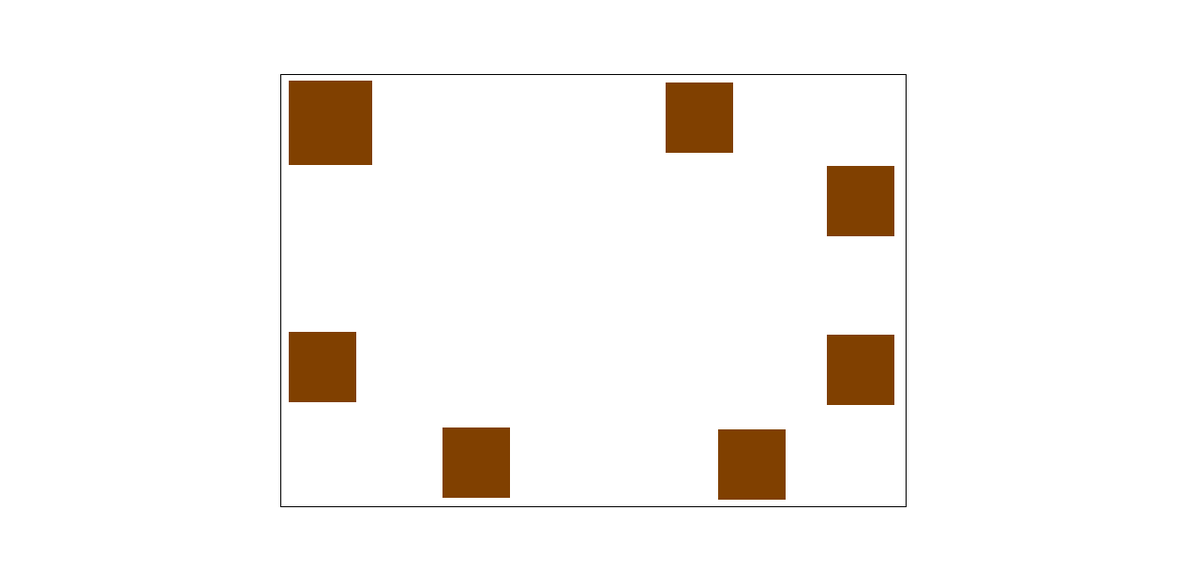 Начерти прямоугольник. Представь, что это план комнаты, и расставь вдоль стен 7 стульев так, чтобы у каждой стены оказалось 2 стула.