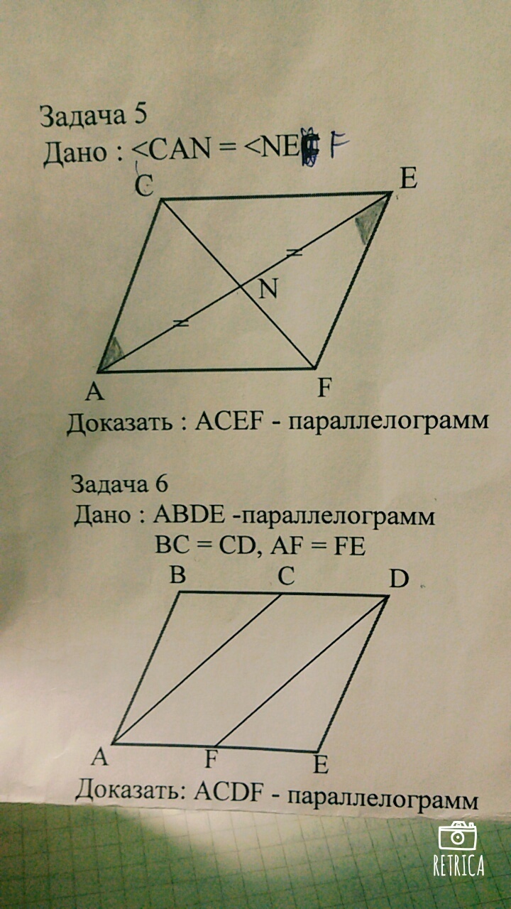 это параллелограм, т.к. по свойству на крест лежащих углов и секущей. угол САН=НЕФ, а значит СА=ЕФ-по свойству.