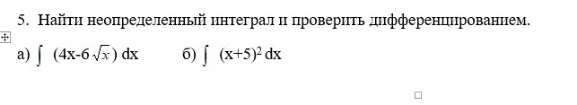 б) ∫ (x+5)^2dx= ∫ (x^2+10x+25)dx = ∫x^2dx+∫10xdx+∫25dx= x^3/3+10x^2/2+ 25x= x^3/3+ 5x^2+ 25x