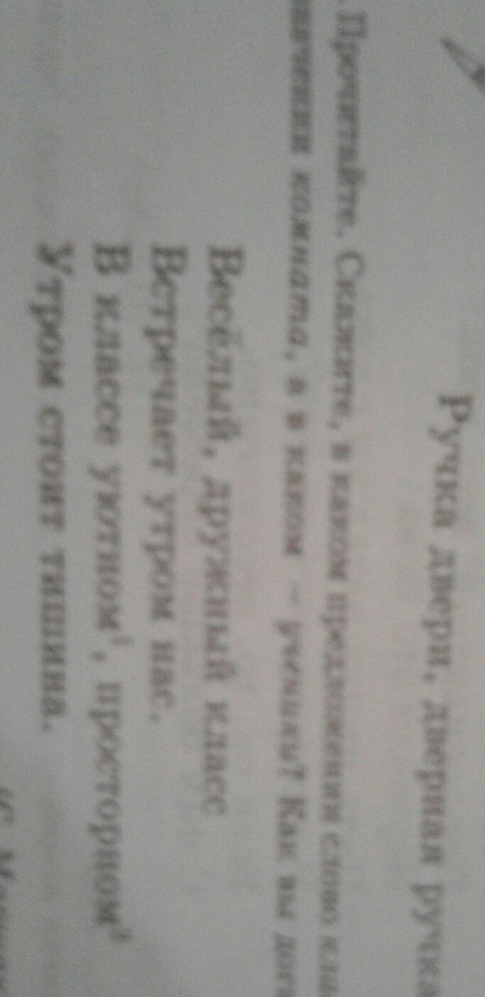 прочитайте скажите в каком предложении слово класс употребляется в значении комната а в каком ученики? как вы догадались --- весёлый дружный класс встречает утром нас в классе уютном просторном утром стоит тишина