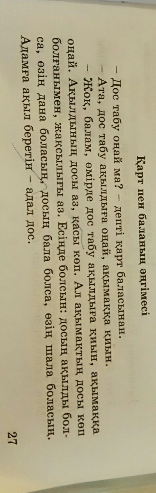 Легко ли найти друга?спросил дедушка у сына.Дедушка найти друга на умный легко,на глупый трудно.Нет сын в жизнье друга найти на умный трудно,на глупый легко.У умный друга меньше,врага много.У глупого друг много но добро меньше.Помните, если ваш друг умный,вы тоже умный,а ваш друг ребёнок,тогда вы дурак.На человеку даёт-верный друг.