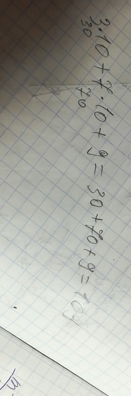 3 * 10 + 7 * 10 + 9 = 30 + 70 + 9 = 109