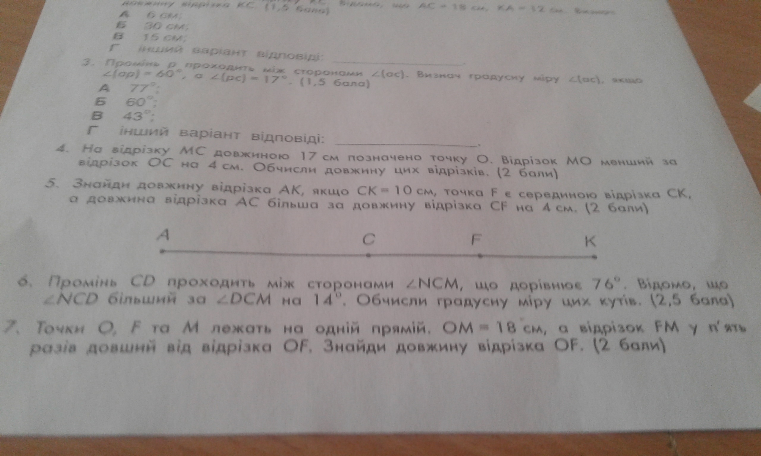 x = MO = 6,5 см, x+4 = OC = 10,5 см.