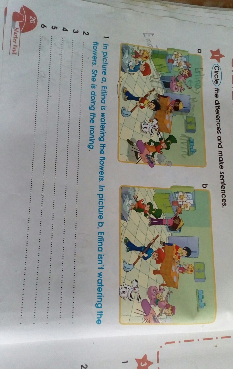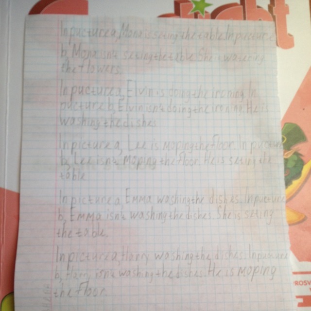 3)The boy and girl doing home work. The money-elf to do his home work.