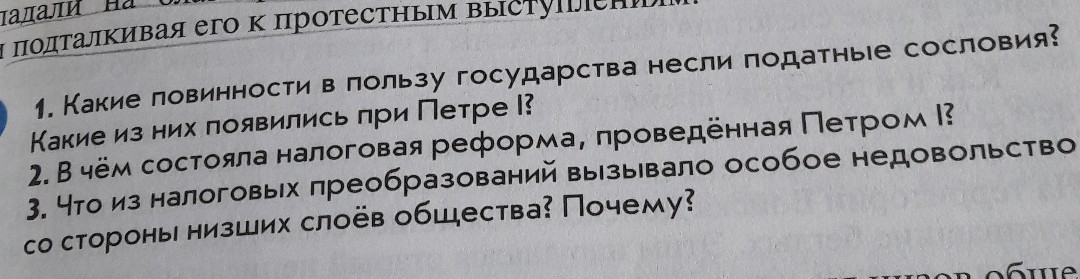 1. Барщина, оброк и подушная подать(появилась при Петре 1)