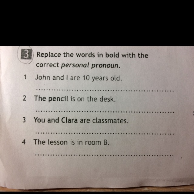 1Her name is joanna,2 It's on the table, 3he and she are classmates