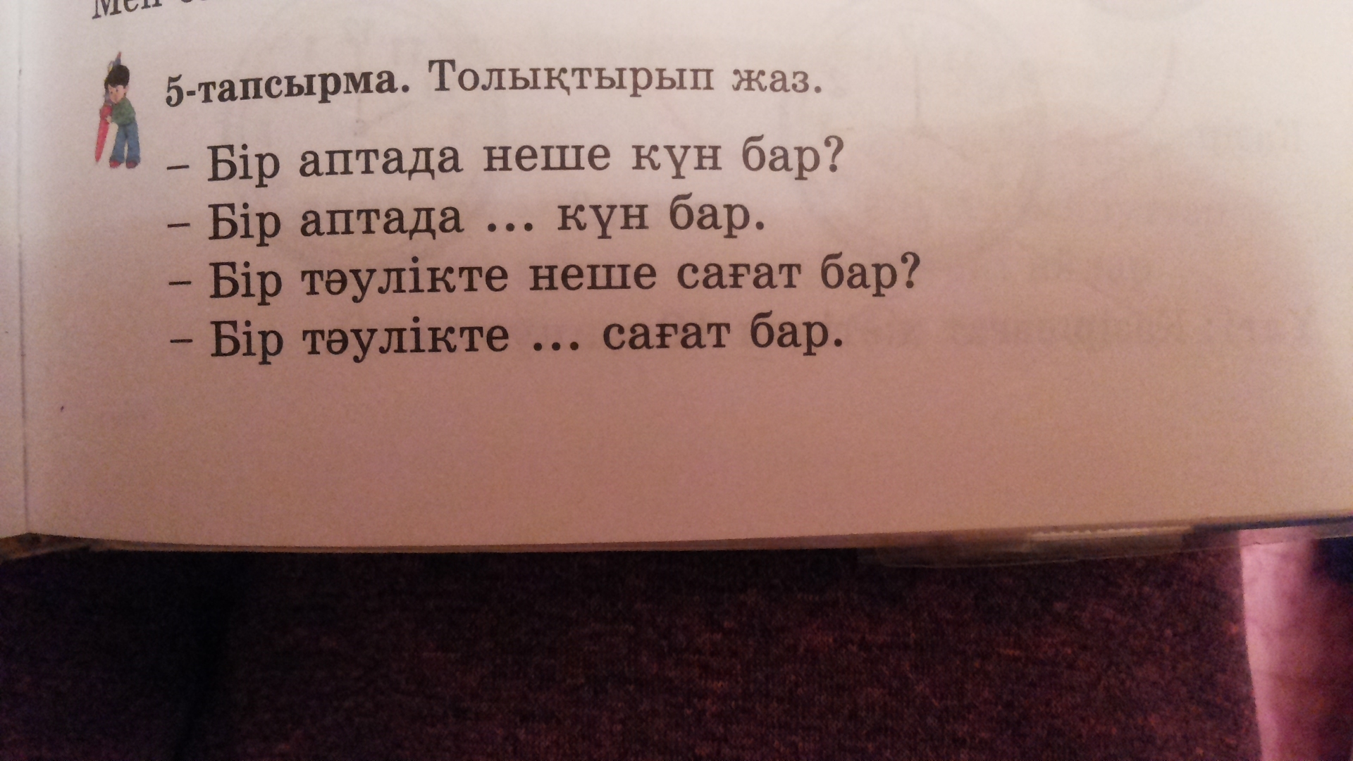 бір аптада 7 күн бар бір тәулікте 24 сағат бар