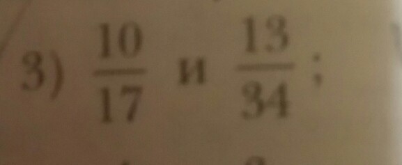 общий знаменатель у этих дробей 34, значит получаются следующие дроби. 20/34 и 13/34