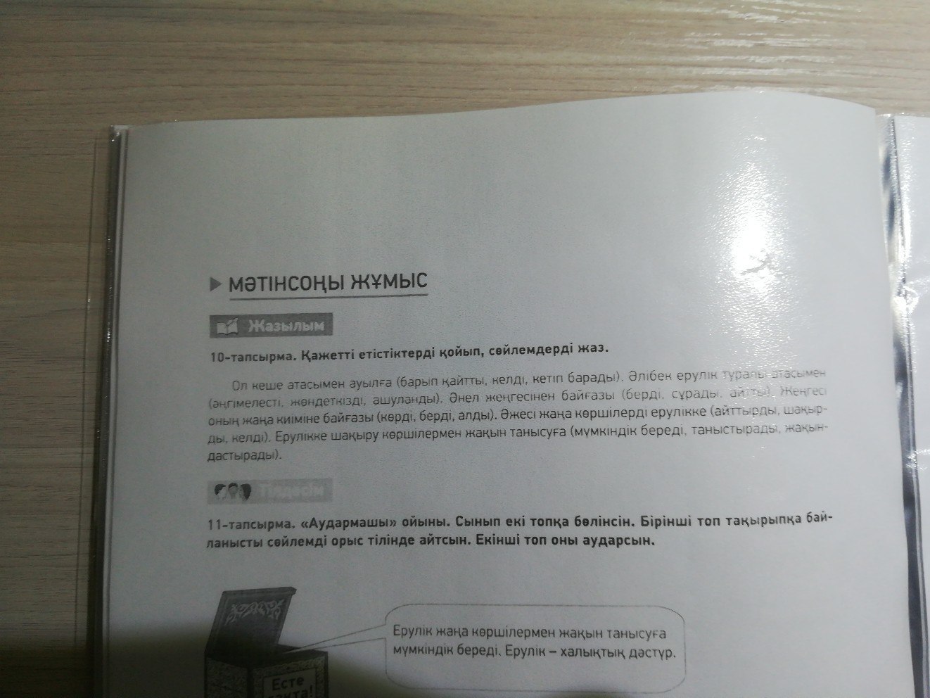 Ол кеше атасымен ауылға барып қайтты. Əлібек ерулік туралы атасымен əңгімелесті. Əнел жеңгесінен байғазы сұрады. Жеңгесі оның жаңа киіміне байғазы берді. Əжесі жаңа көршілерін епулікке шақырды. Мүмкіндік береді