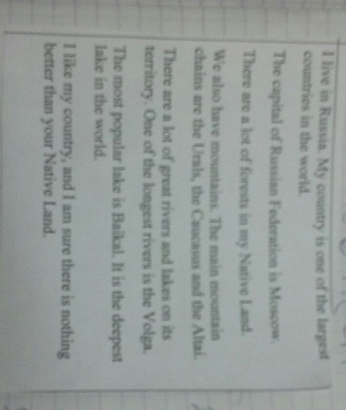 Я живу в России. Моя страна – одна из самых больших стран в мире.
