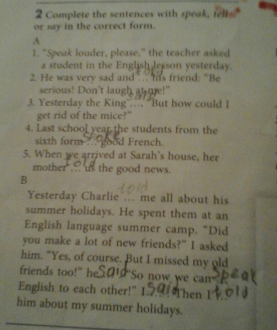 1. Говори громче, пожалуйста - попросил учитель ученика вчера на уроке
