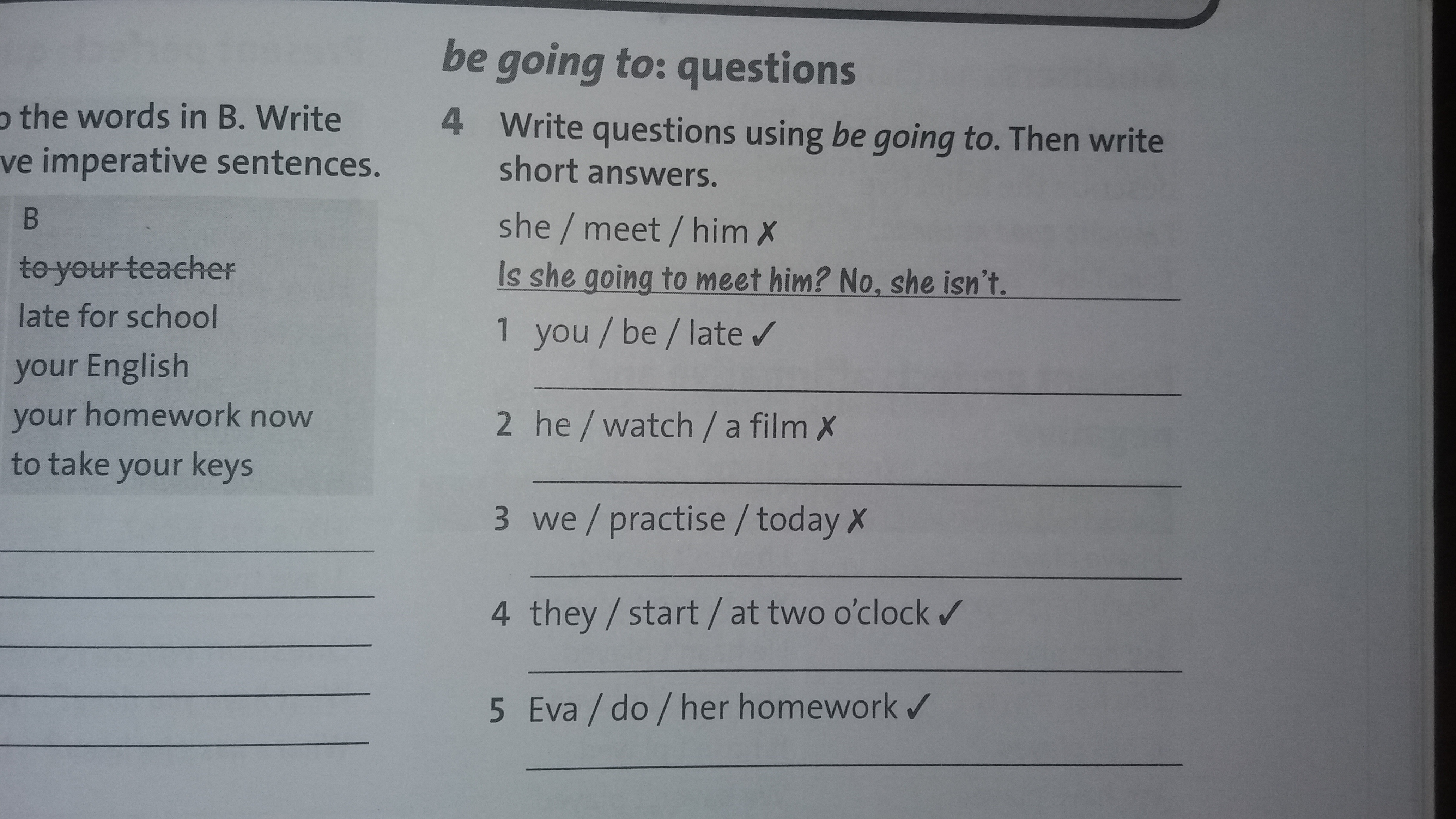 5) Is Eva going to do her homework? Yes, she is