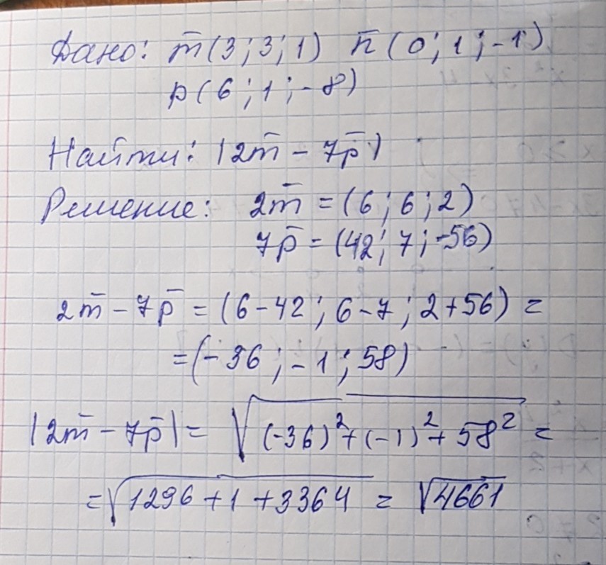 Даны векторы m (3; 3; 1), n (0; 1; -1), p (6; 1; -8)