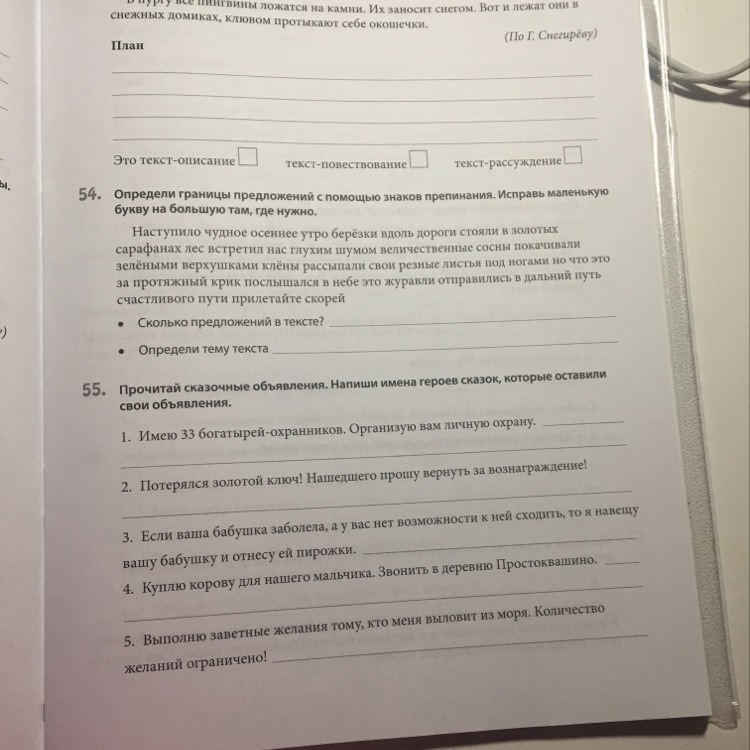 54: В этом тексте 6 предложений, тема "Осень". 55: 2: Лиса Алиса вроде 3: Матроскин. Остальное не помню прости((