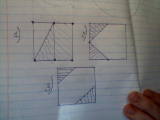 начерти квадрат со стороной равной 4 см.Проведи 2 линии так.чтобы получилось :2 треугольника и 1 четырехугольник; 2 треугольника и 1 пятиугольник; 2 треугольника и 1 шестиугольник.