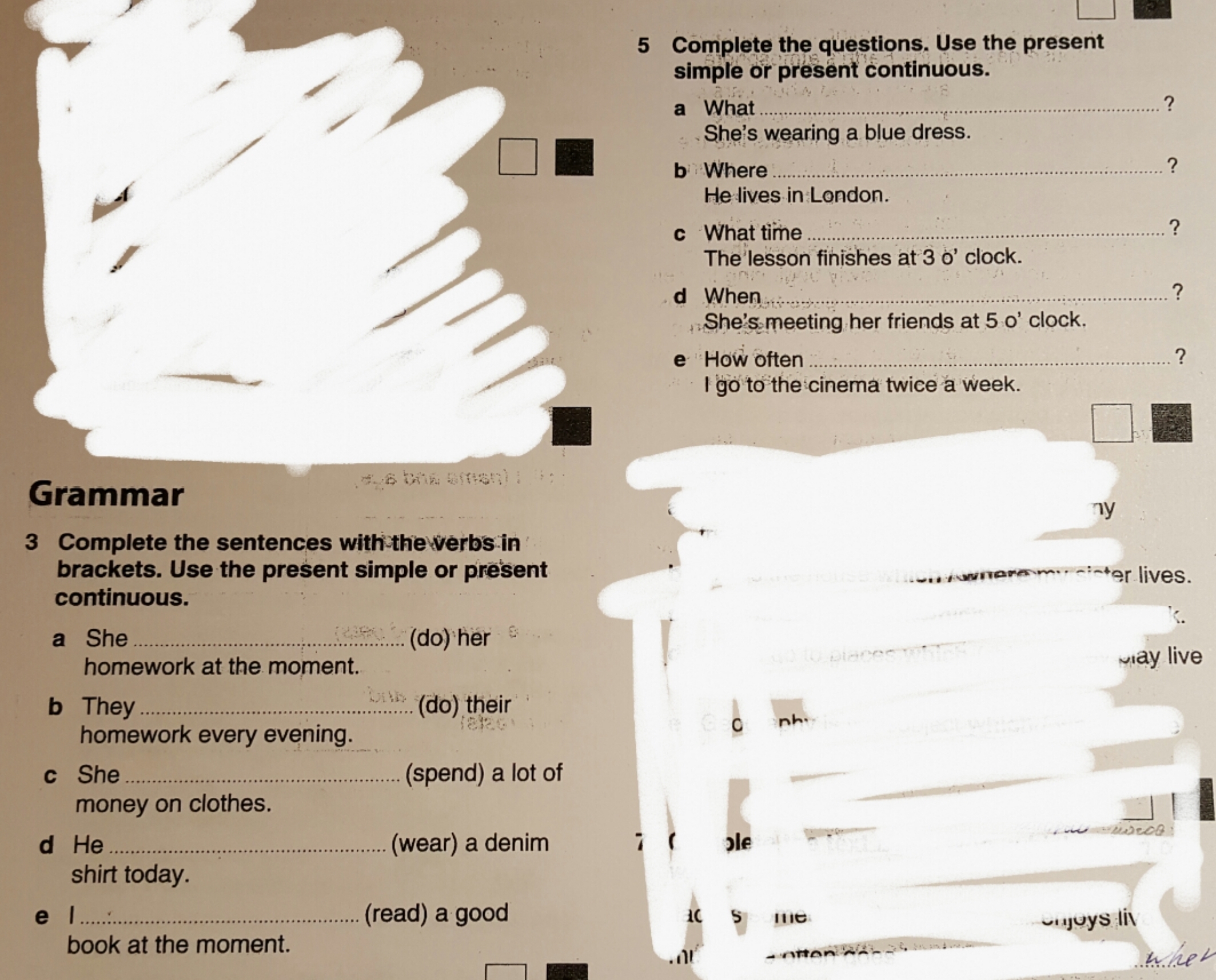 a She is doing her homework at the moment.